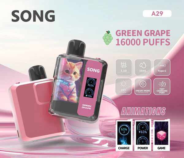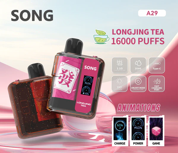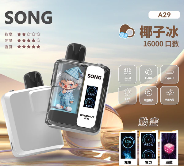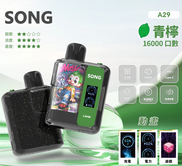 正品崧SONG A29娱乐系列两档可调16000口一次性电子烟-TFT屏动画显示麻将骰子/猜拳/表情