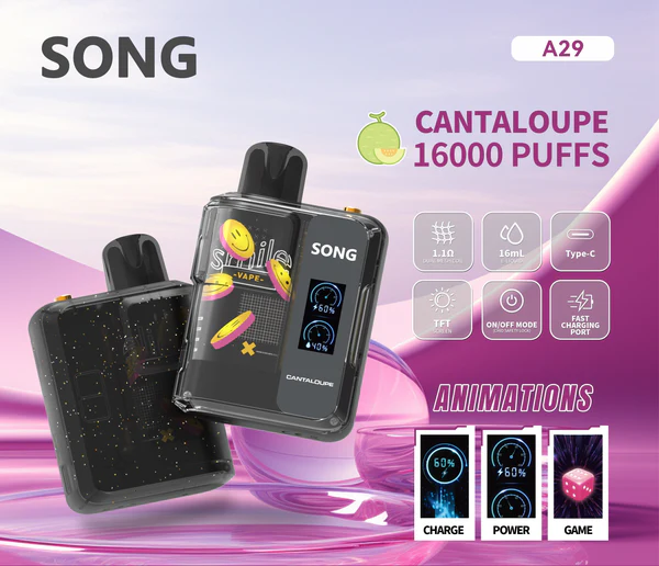 崧A29娱乐系列FUN SERIES是小崧科技的高科技明星产品。与普通崧盒不同,它具备更多的烟油含量,抽吸次数可达16000口。同时,其搭载了两档调节功能和TFT大屏幕显示功能,您可以更直观地了解到剩余电池电量和产品的工作功率,状态。此外,A29娱乐系列的每个口味还能自由显示不同的动画,比如掷骰子,猜拳,各种有趣表情等,生动有趣,让人爱不释手。崧SONG是全球知名电子烟品牌,以其稳定的质量和做工,高科技雾化技术著称,口感浓郁顺滑,中高度凉爽。A29娱乐系列秉承了崧醇厚香甜,口味偏凉的调油风格,更是别处心裁地推出了黄瓜风味,凤梨柳橙风味和柠檬可乐风味,口味层次十分丰富,值得一试。